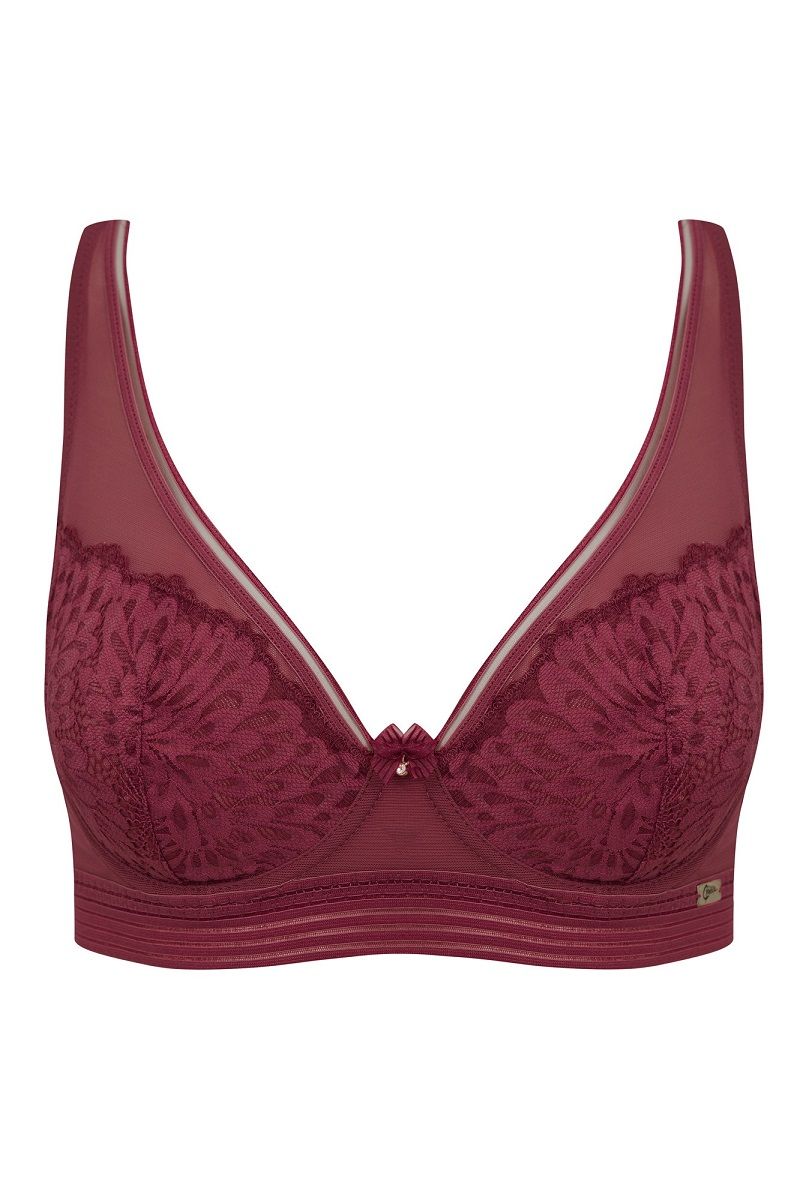 Кружевной бюстгальтер с треугольными мягкими чашками с вертиткальным швом, на каркасах. Широкий пояс обеспечивает отличную поддержку и моделирует силуэт.